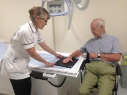 You may be asked to lie down on a table, sit in a chair, or stand. A technologist will help position you properly. The exam will take around 15 minutes.